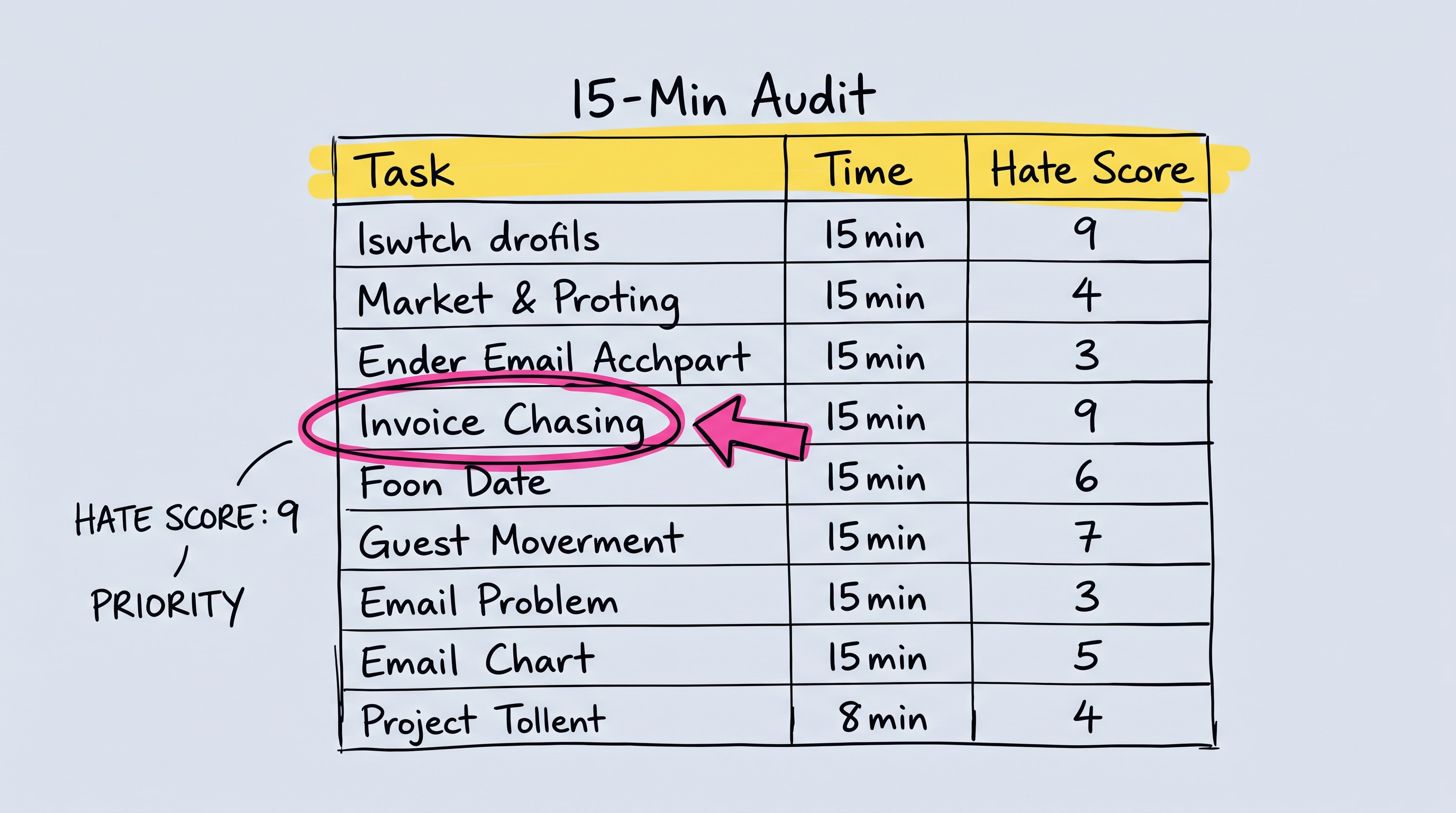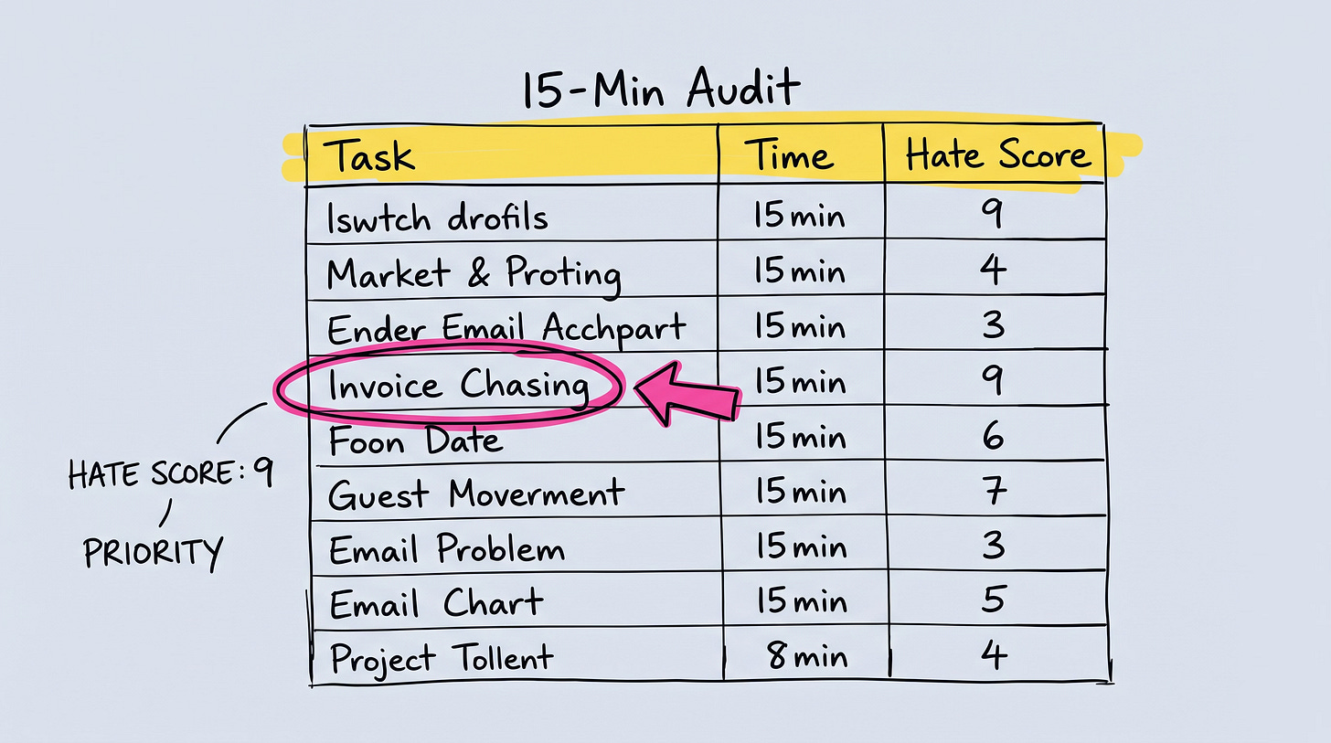 A plumbing company in Birmingham ran this audit on a Tuesday morning. They found their office manager spent 2 hours a day chasing invoice payments by email. Hate score: 9.