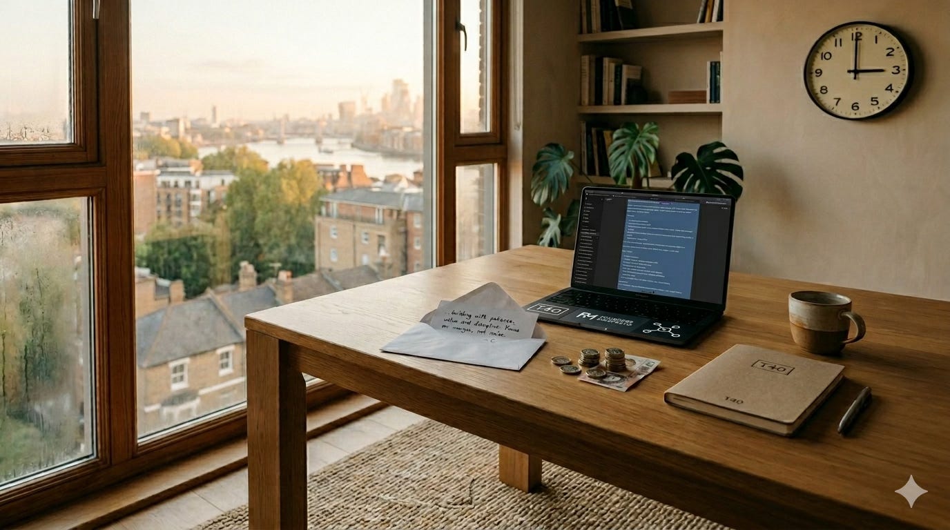 That is what I am building towards. TERMS is my attempt at this. Six hour days. No fuckwits. Friday protected. A minimum £xk monthly draw. Not because I have earned the right after decades. Because I am choosing the destination now, not drifting toward someone else’s definition of success.